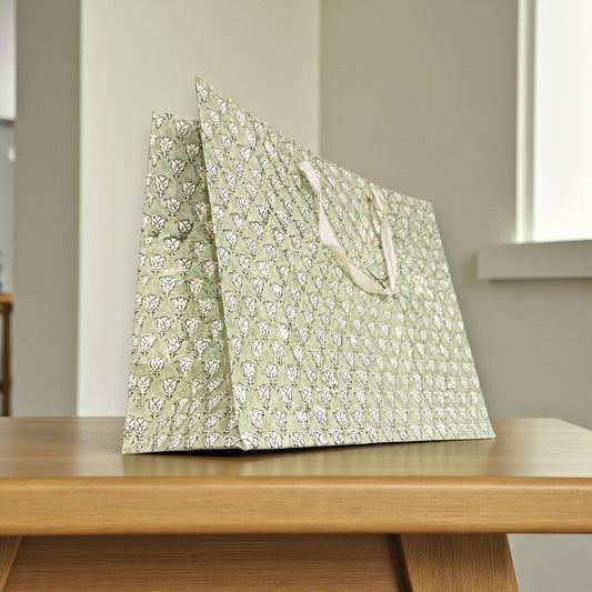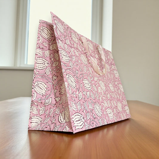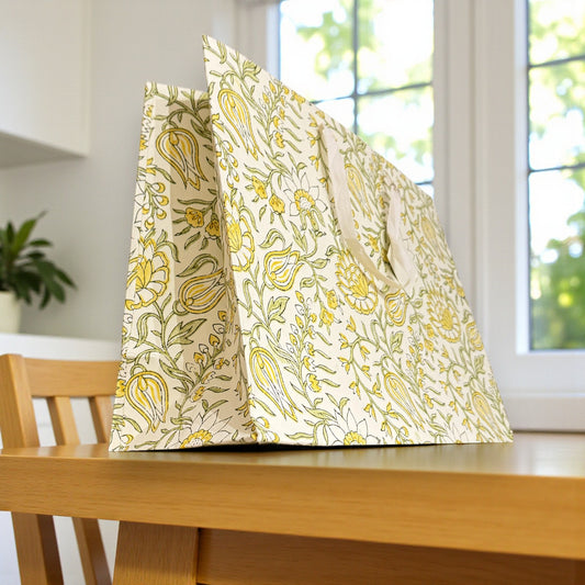 Handmade Block Printed Paper Bag | Vanilla Floral
