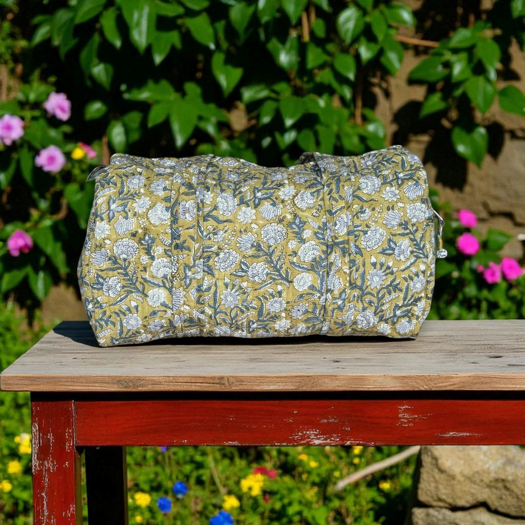 Block Printed Quilted Duffle Bag – 100% Cotton
