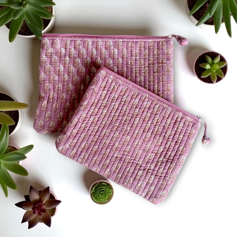 Quilted Flat Pouch – Set of 2 | 100% Cotton