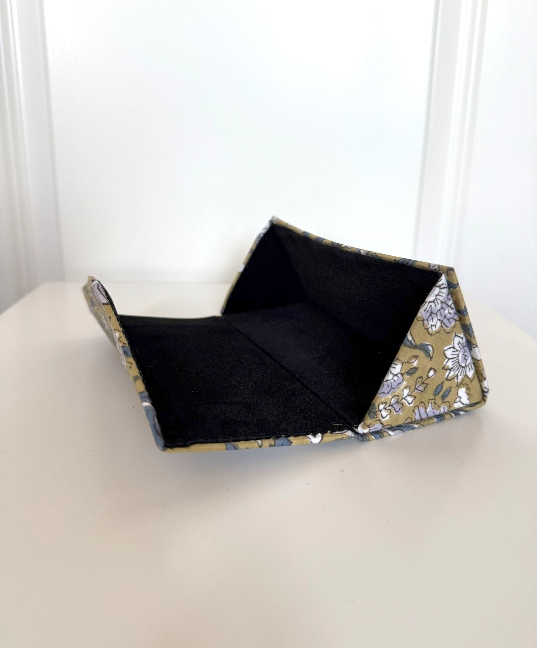 Protect your eyewear in style with this beautifully handcrafted glasses case. Made in 100% cotton fabric with traditional hand block printing on the outside and a soft black velvet lining on the inside, it offers both elegance and protection.