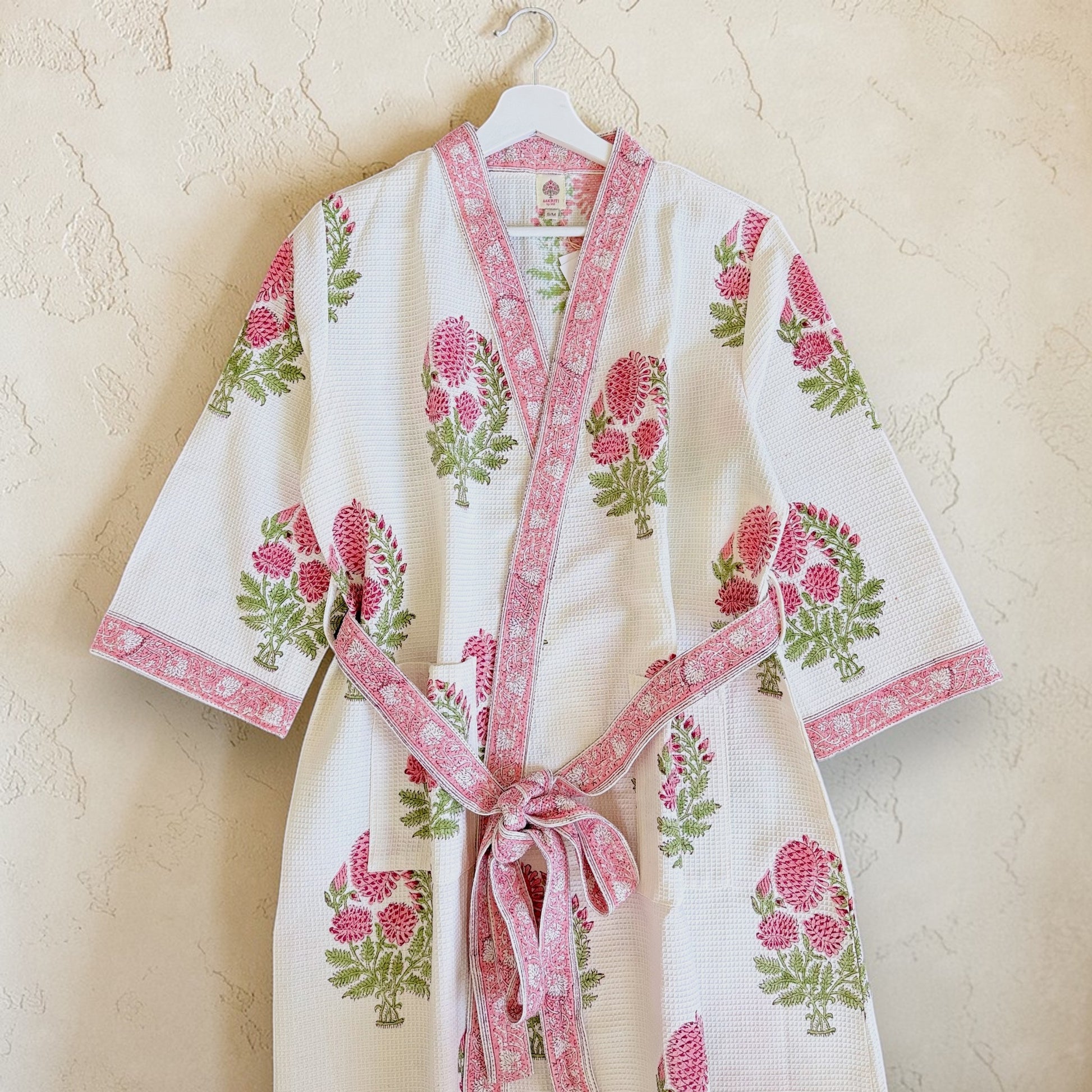 Handmade: The pattern on the bathrobe is hand-crafted, hand printed with natural dyes, making every piece unique.