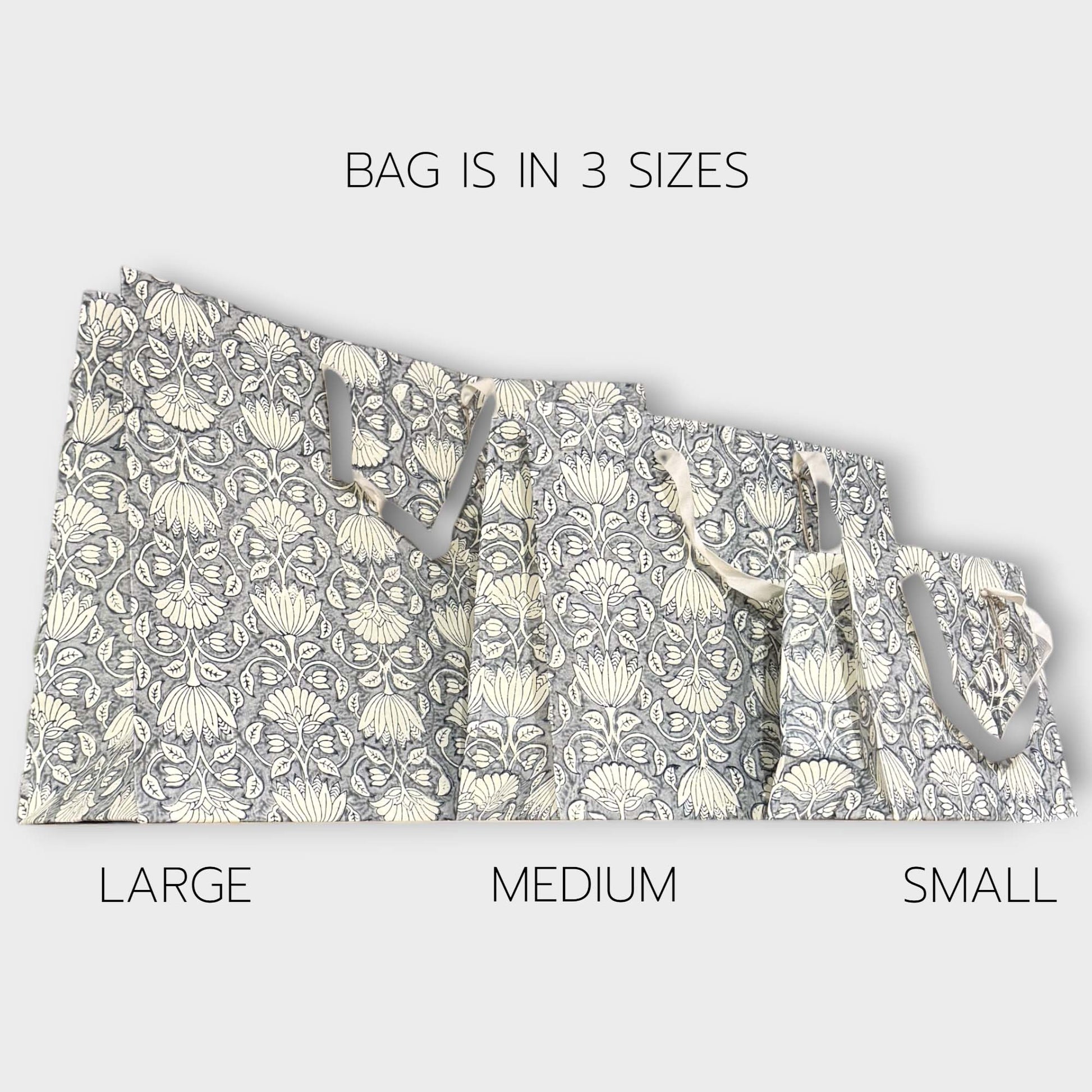 Discover the beauty of craftsmanship with our handmade paper bag, created using good quality handmade paper and adorned with traditional hand block printing. Available in 3 sizes, these bags are designed to add charm and elegance to any gift or purchase.
