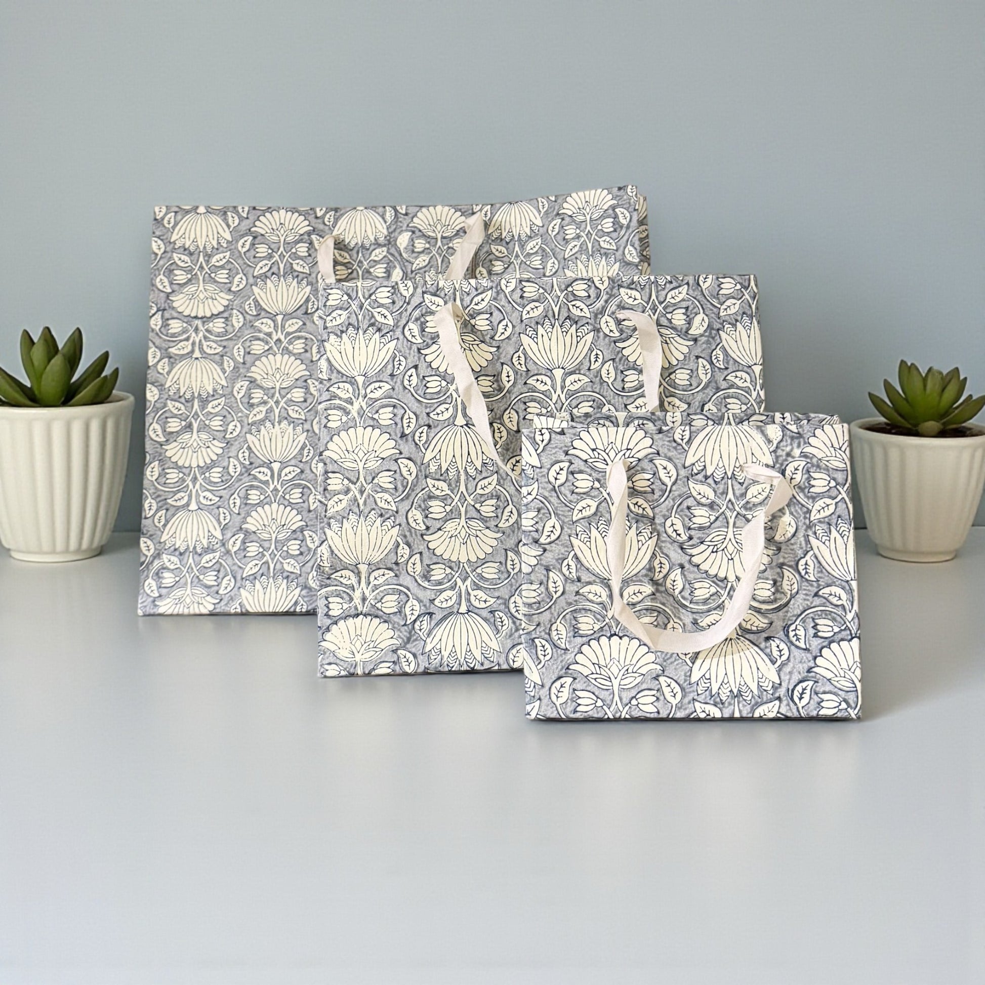 Handmade Block Printed Paper Bag | Blue Floral