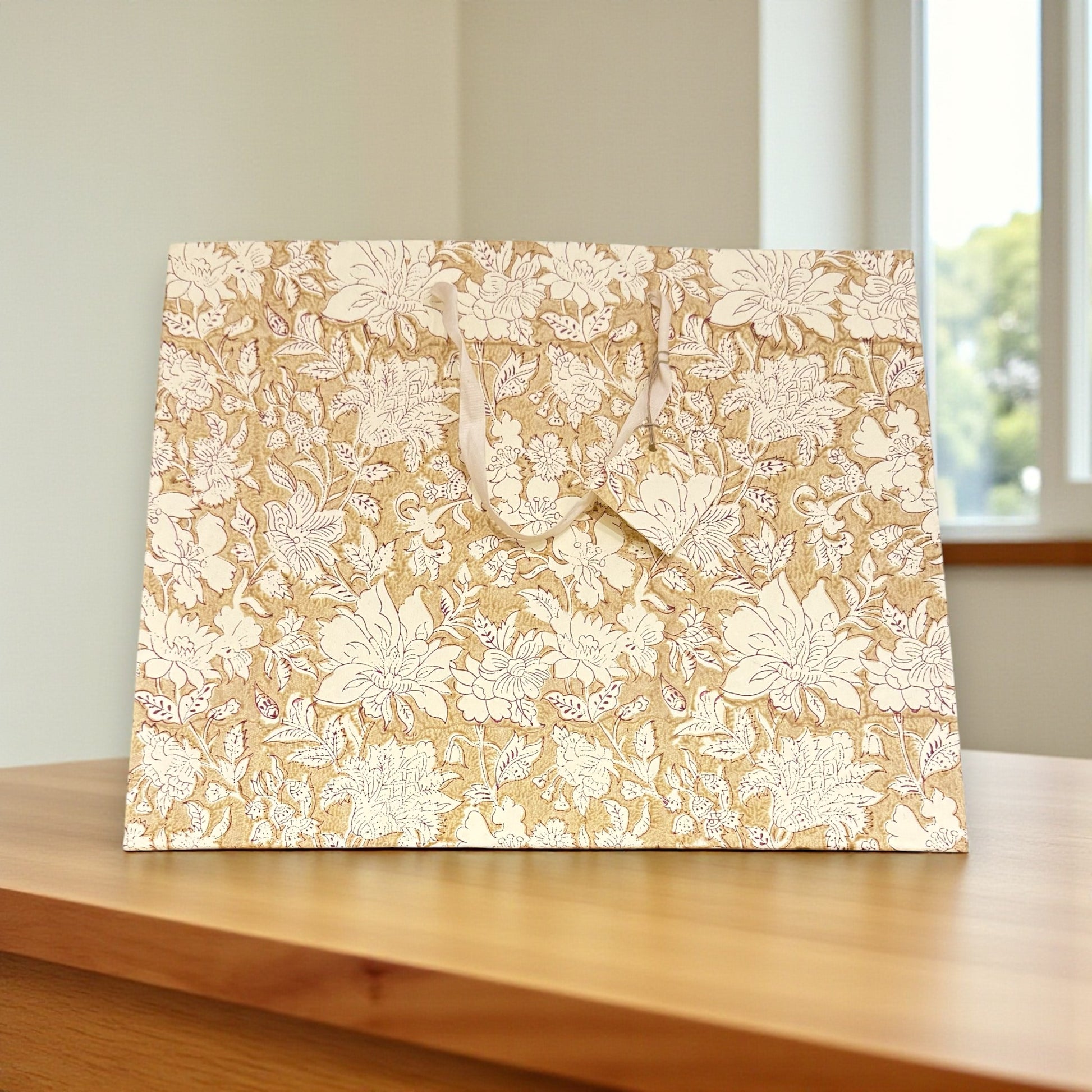 Handmade Block Printed Paper Bag | Brown Floral