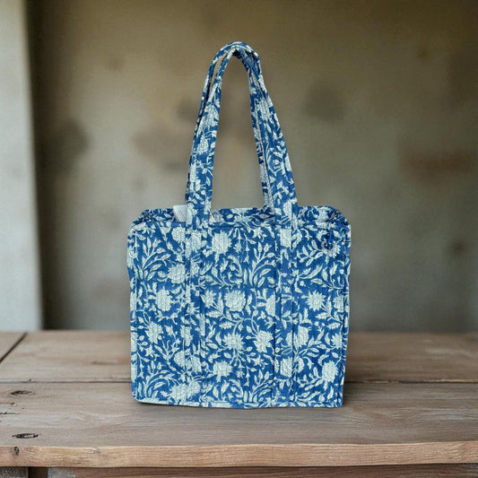 Block Printed Quilted Laptop Bag – 100% Cotton