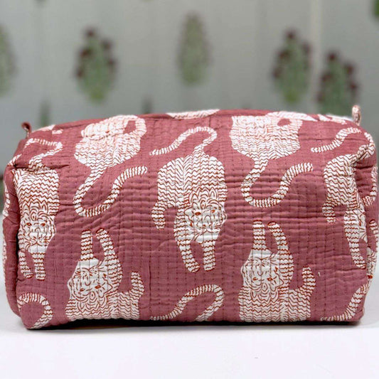 This charming pouch is made from 100% cotton and features a unique hand-block print with intricate quilting for added texture and durability. Inside, you’ll find a waterproof and leakproof lining for added protection, perfect for carrying essentials with style and functionality.